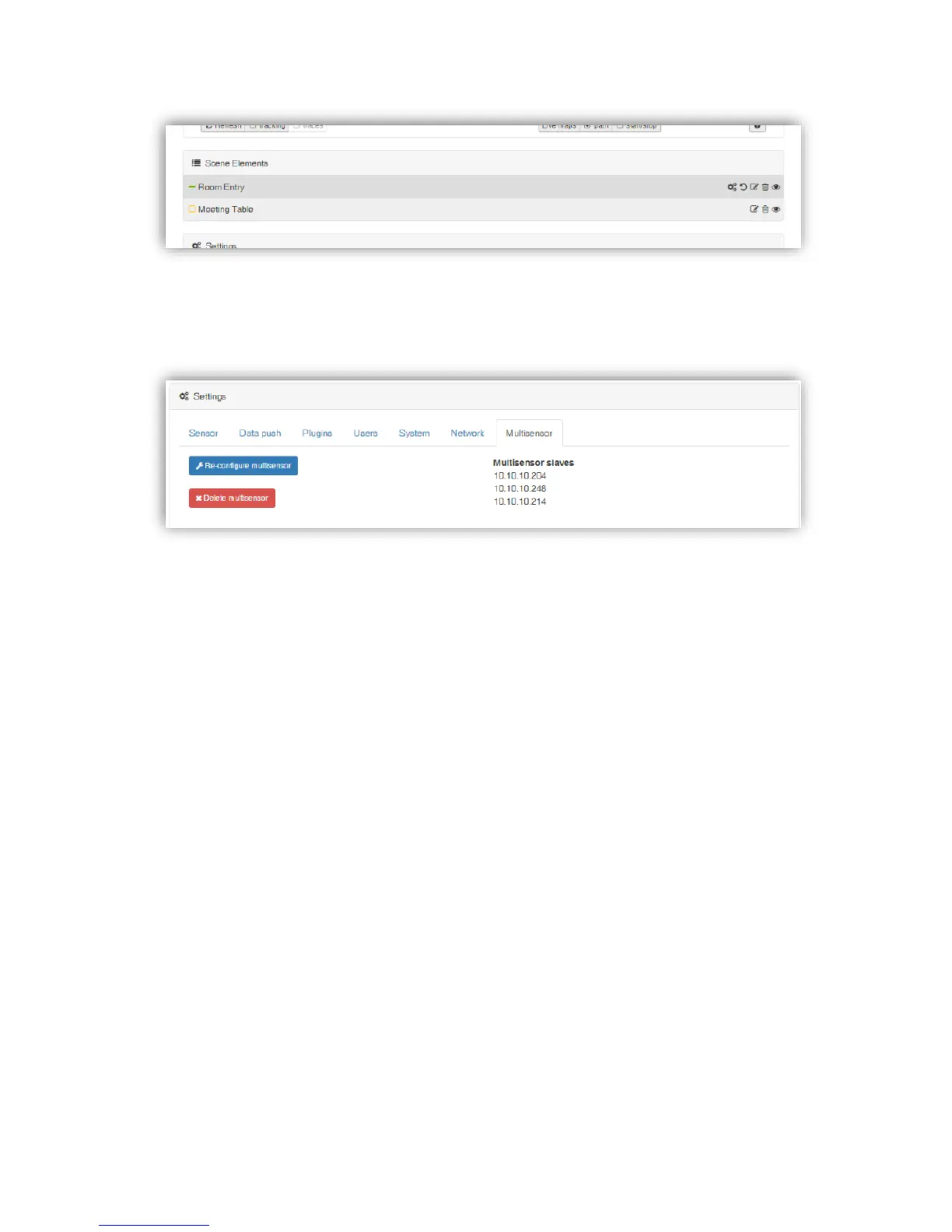 The sections “Settings” “Multisensor” contains a list of all involved sensors with their IP