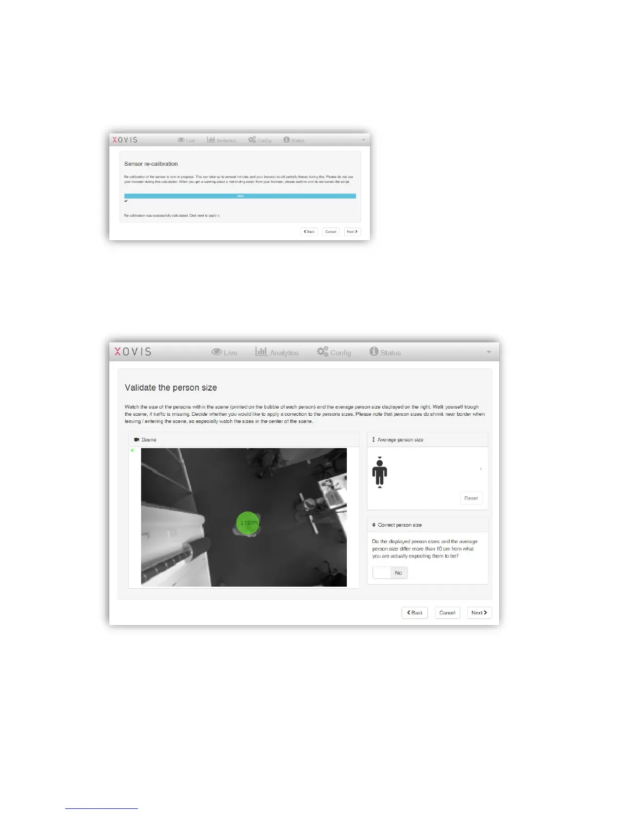When the re-calibration is done, it is applying to the sensors by clicking on “Next”.