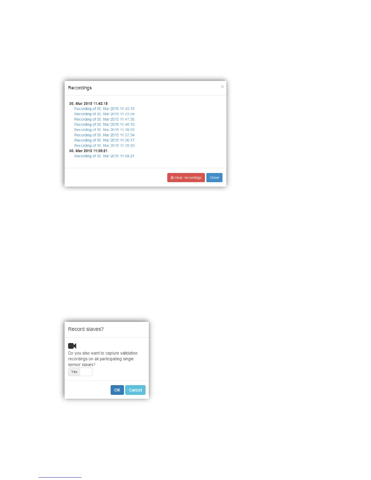 By clicking on “show recordings”, all recorded sequences stored on the sensors are