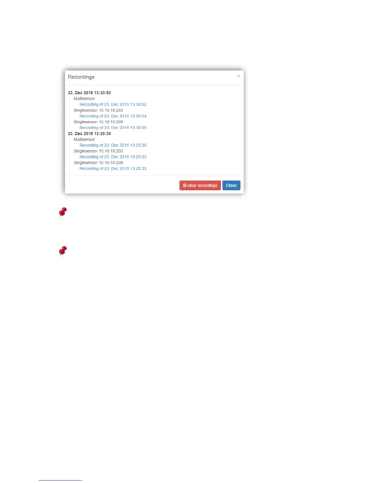 Belonging singlesensor recordings will also be listed in the “show recordings” modal in the
