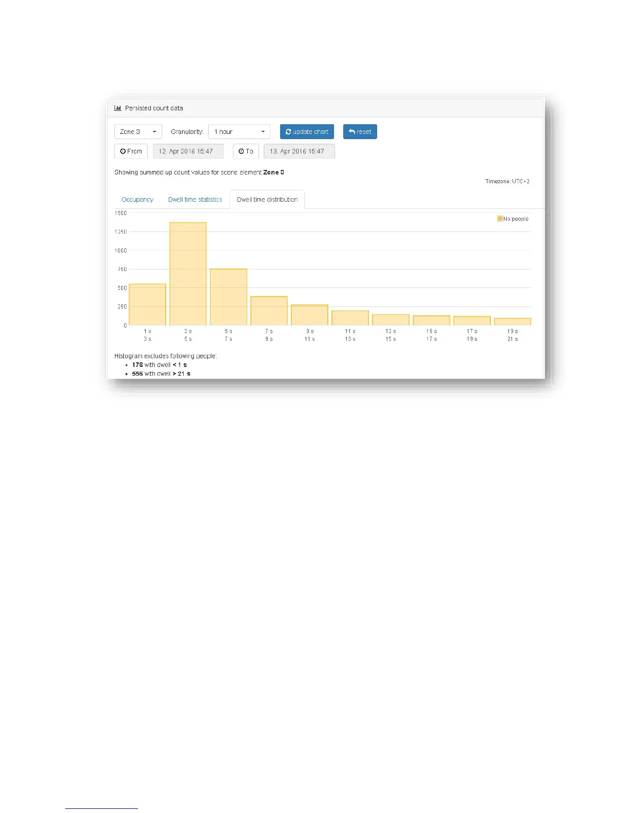 The Dwell time distribution shows a histogram of all dwell times during the selected time
