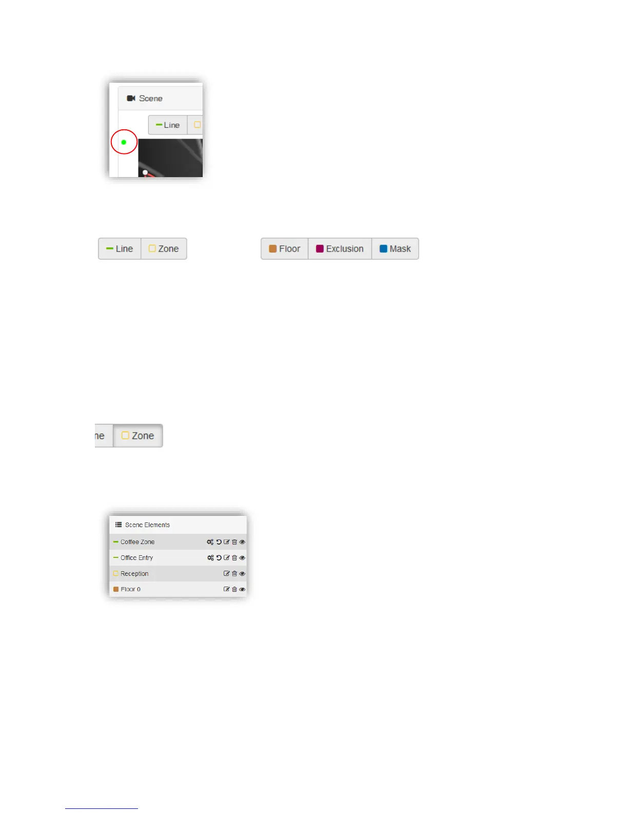 These buttons allow the user to add new scene elements like count lines and zones but also