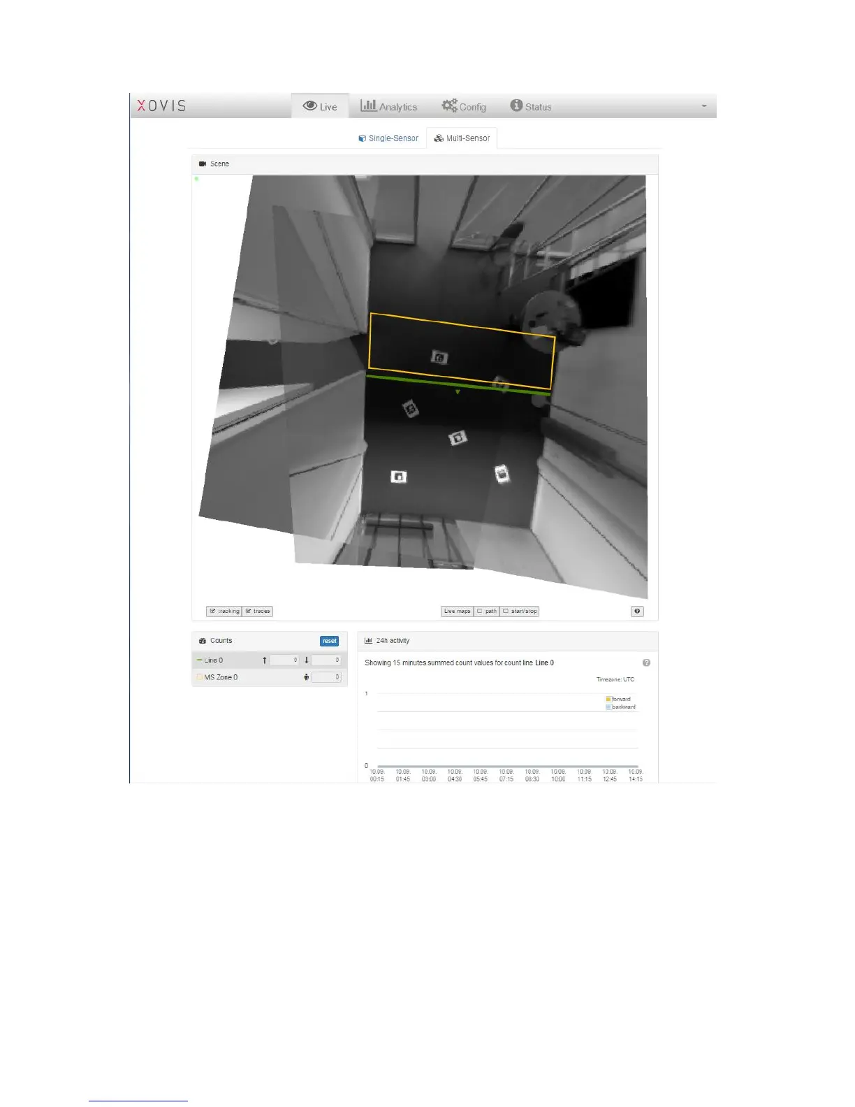 The section “Counts” will show the counts of the count lines and zones of the multisensor.