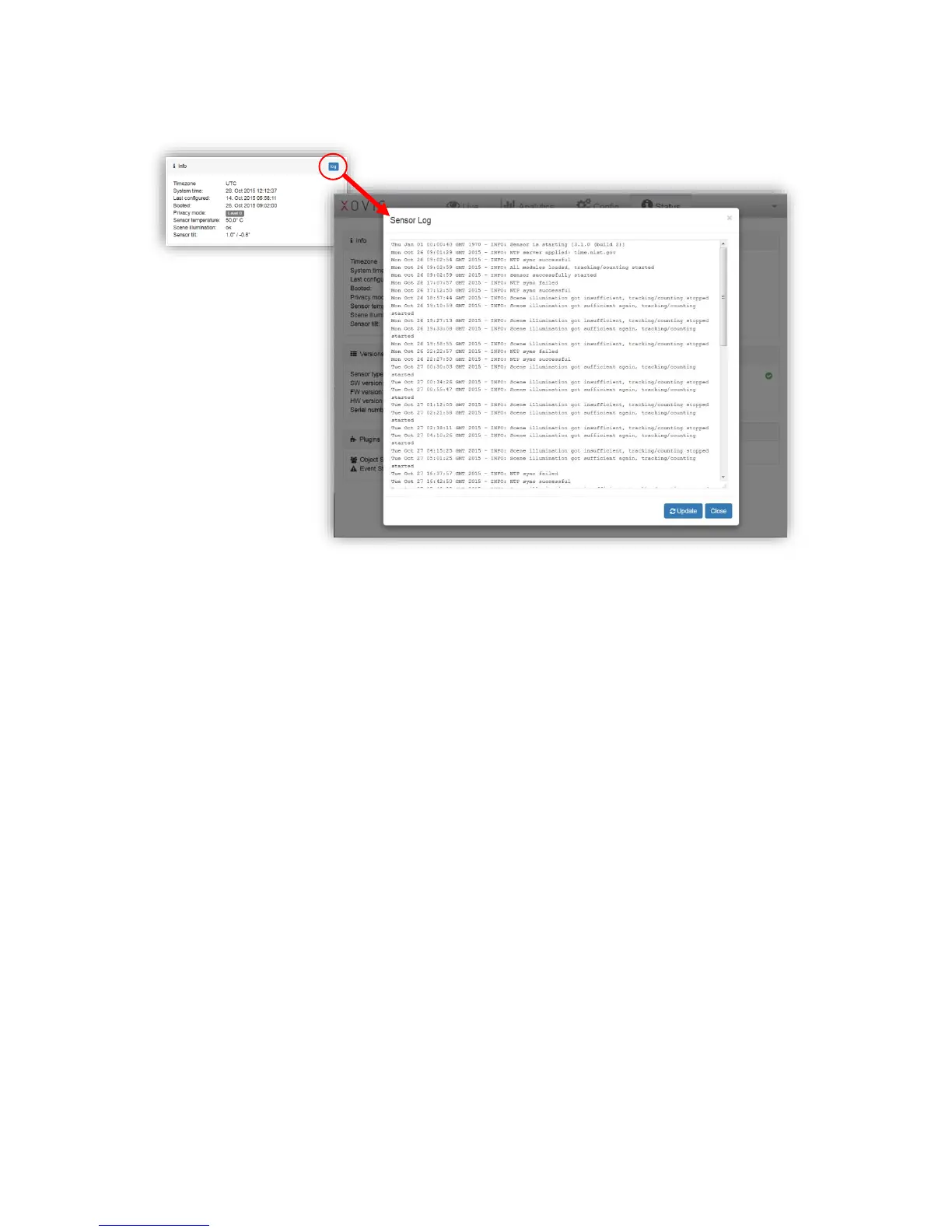 The “log”-button on the upper right corner of the Info box opens the detailed log view:
