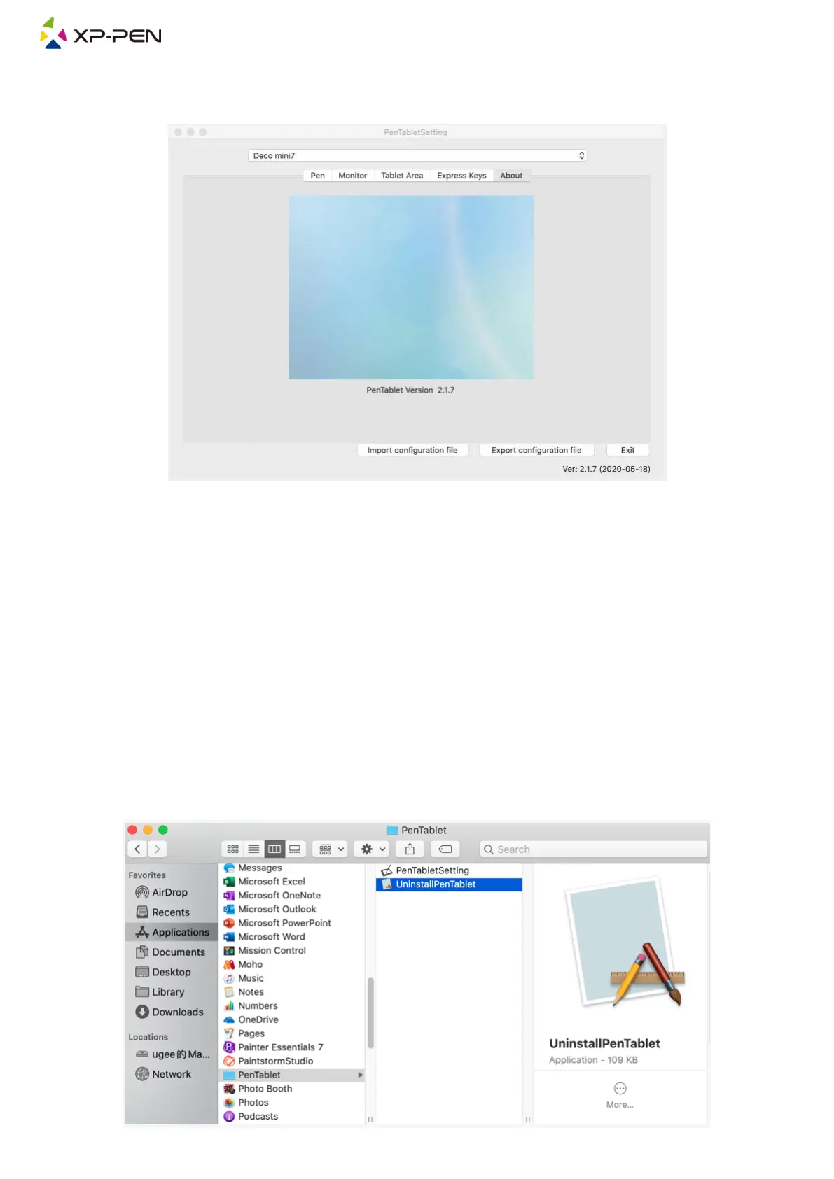 Open [Finder] [Application] [Pen Tablet], then click “Uninstall Pen Tablet” and follow the on-screen
