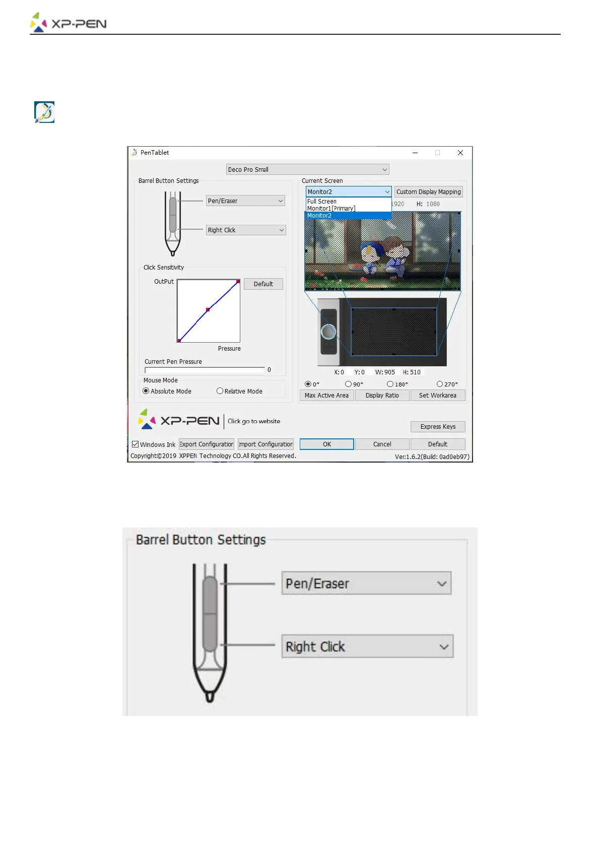 You may customize the functions of your tablet pen’s barrel buttons here. Use the “Function Key”