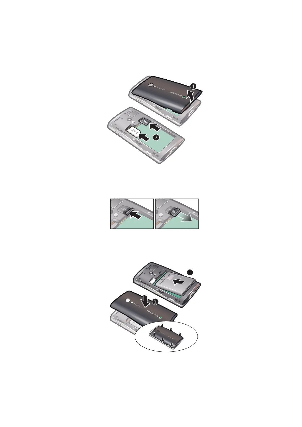 Slide in the SIM card and the memory card with the gold-coloured contacts facing