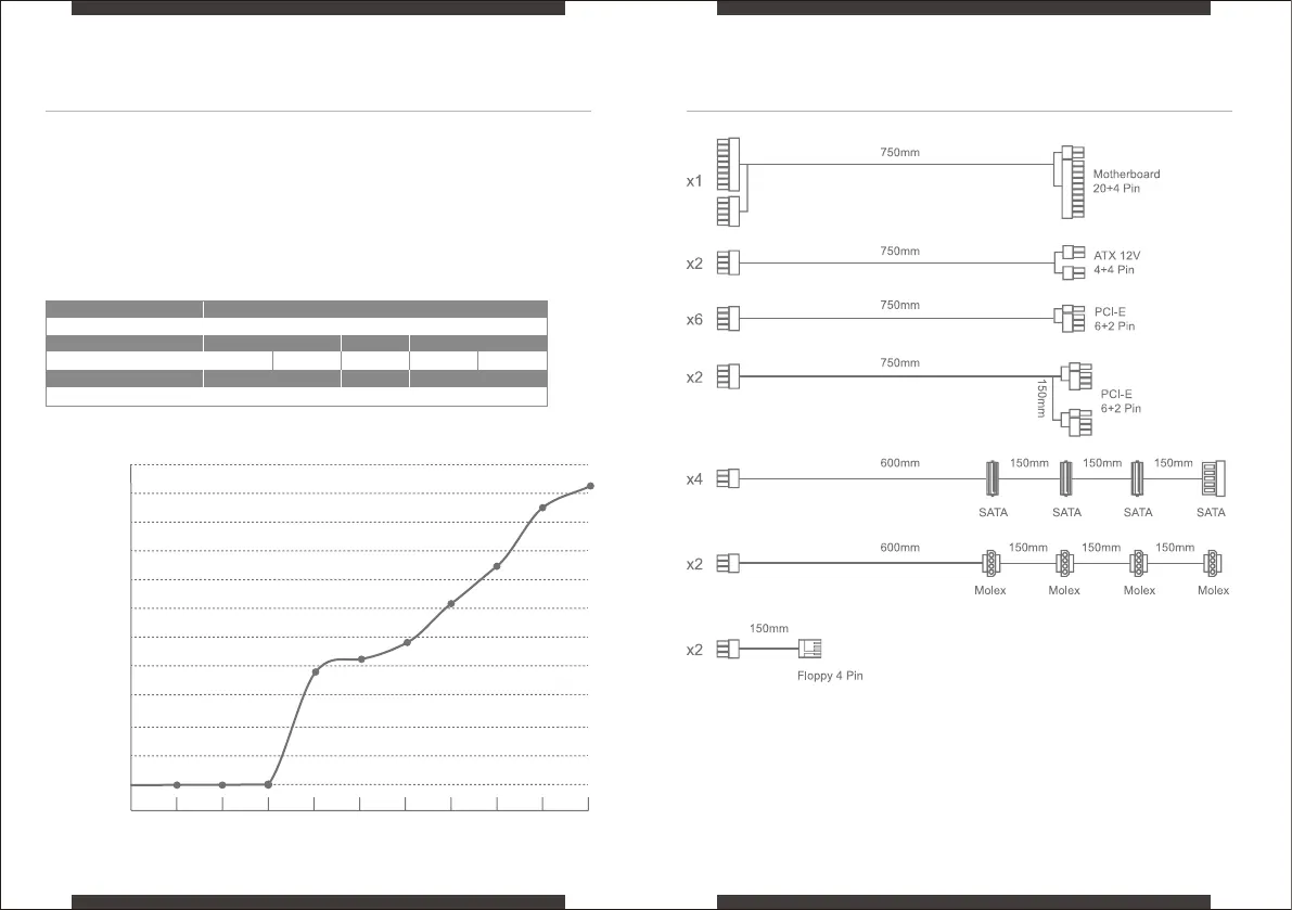 XPG CYBERCORE PLATINUM Series - CYBERCORE 1300 PLATINUM Specifications; DC Cable Listing; 1300 W Model Cable Configuration