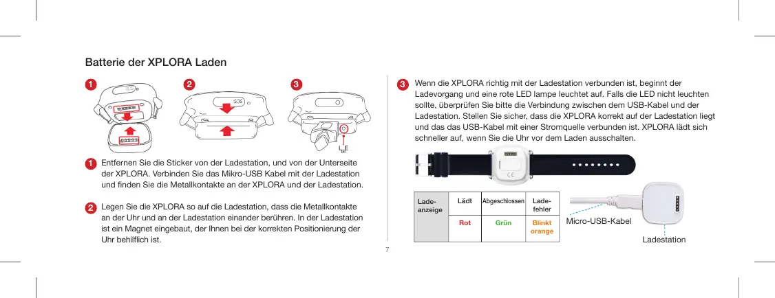 der XPLORA. Verbinden Sie das Mikro-USB Kabel mit der Ladestation