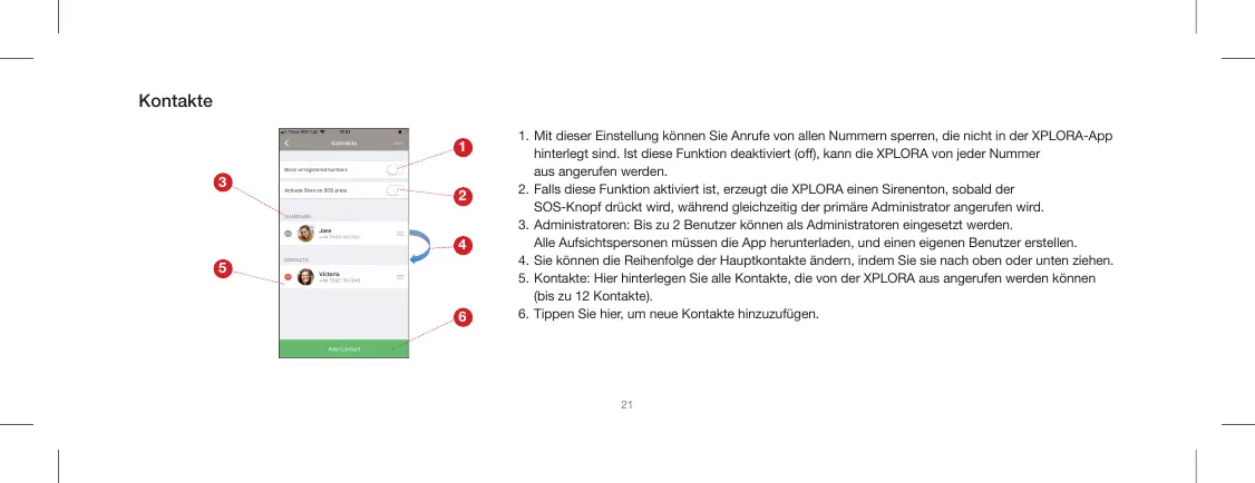 5. Kontakte: Hier hinterlegen Sie alle Kontakte, die von der XPLORA aus angerufen werden können