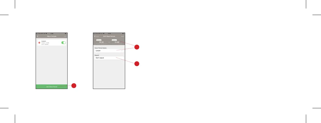 2. Agrega un nombre al periodo de silencio y selecciona la hora.