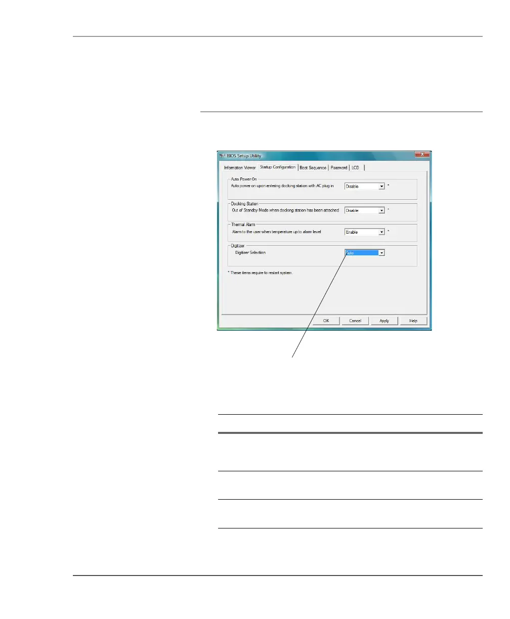 2. In the Digitizer Selection field, select the value from the
