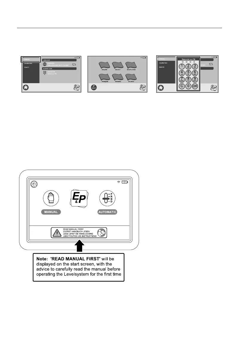 icons “LANGUAGE” AND “ACCESS CODE”. After doing this the touchscreen is ready to use.