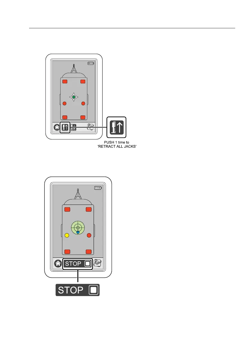 By pushing the button “RETRACT ALL JACKS” a “STOP” sign appears on the screen,