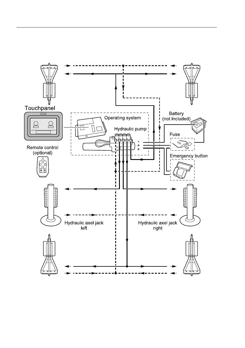 Below the schematic view/diagram of the E&P Hydraulics Levelsystem.