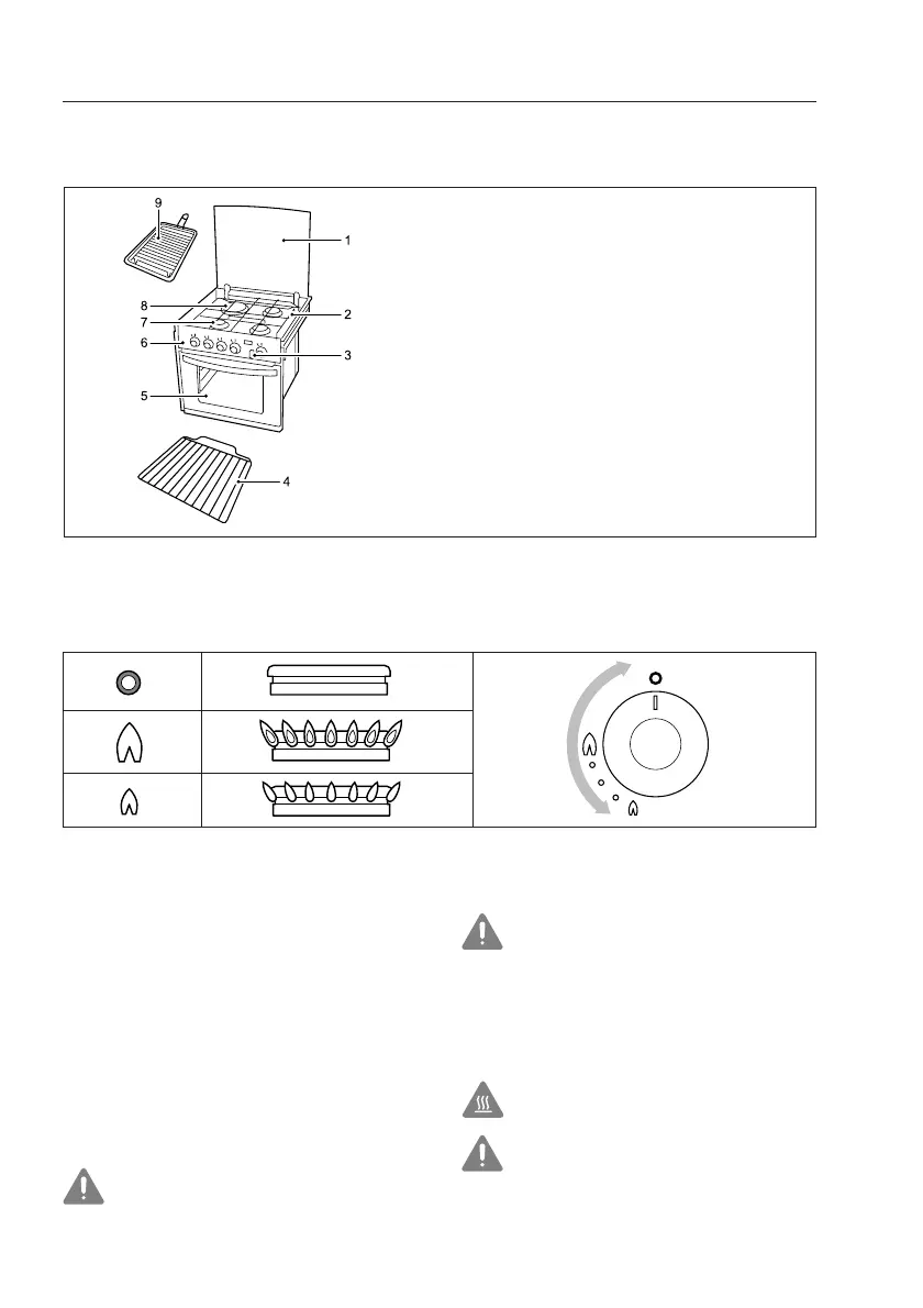 The types of burners may vary depending on the type of appliance. Refer to Technical