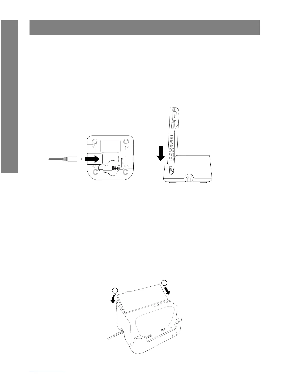 2. Press the battery down to t into the battery slot. The cradle battery
