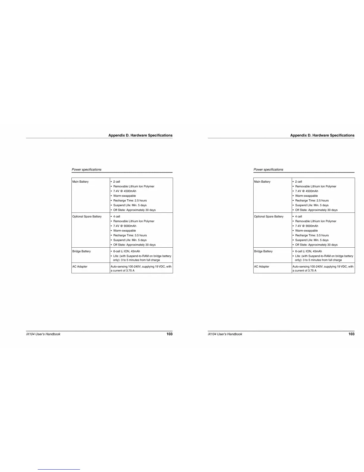 Xplore IX104 - Power Specifications