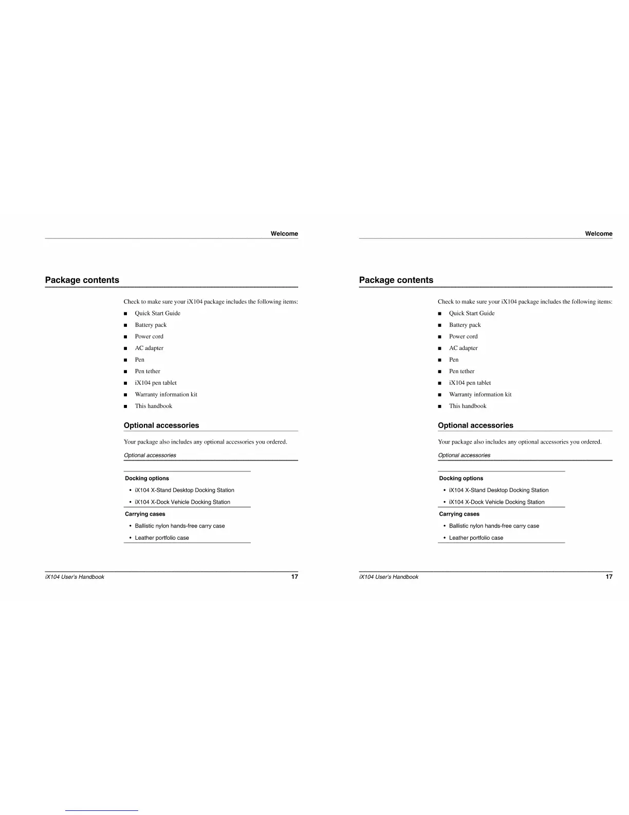 Xplore IX104 - Package Contents; Optional Accessories; Docking Options; Carrying Cases