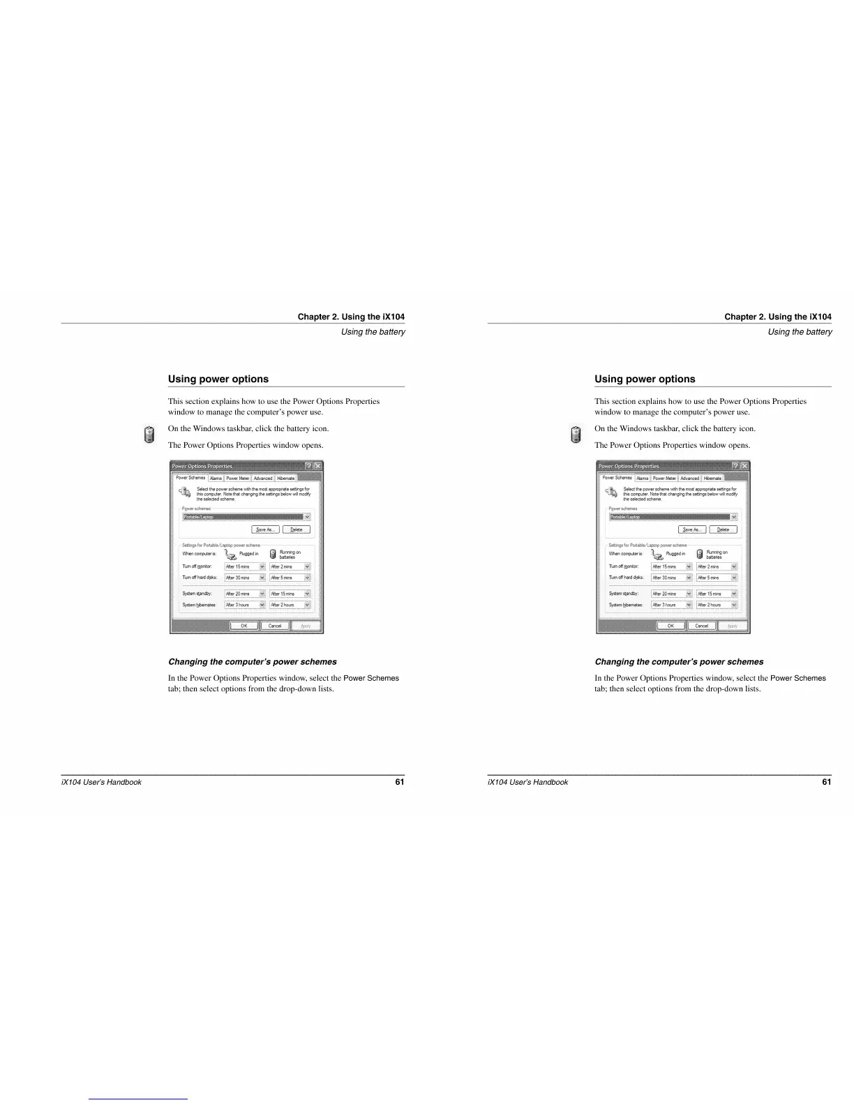 Xplore IX104 - Using Power Options; Changing the Computers Power Schemes