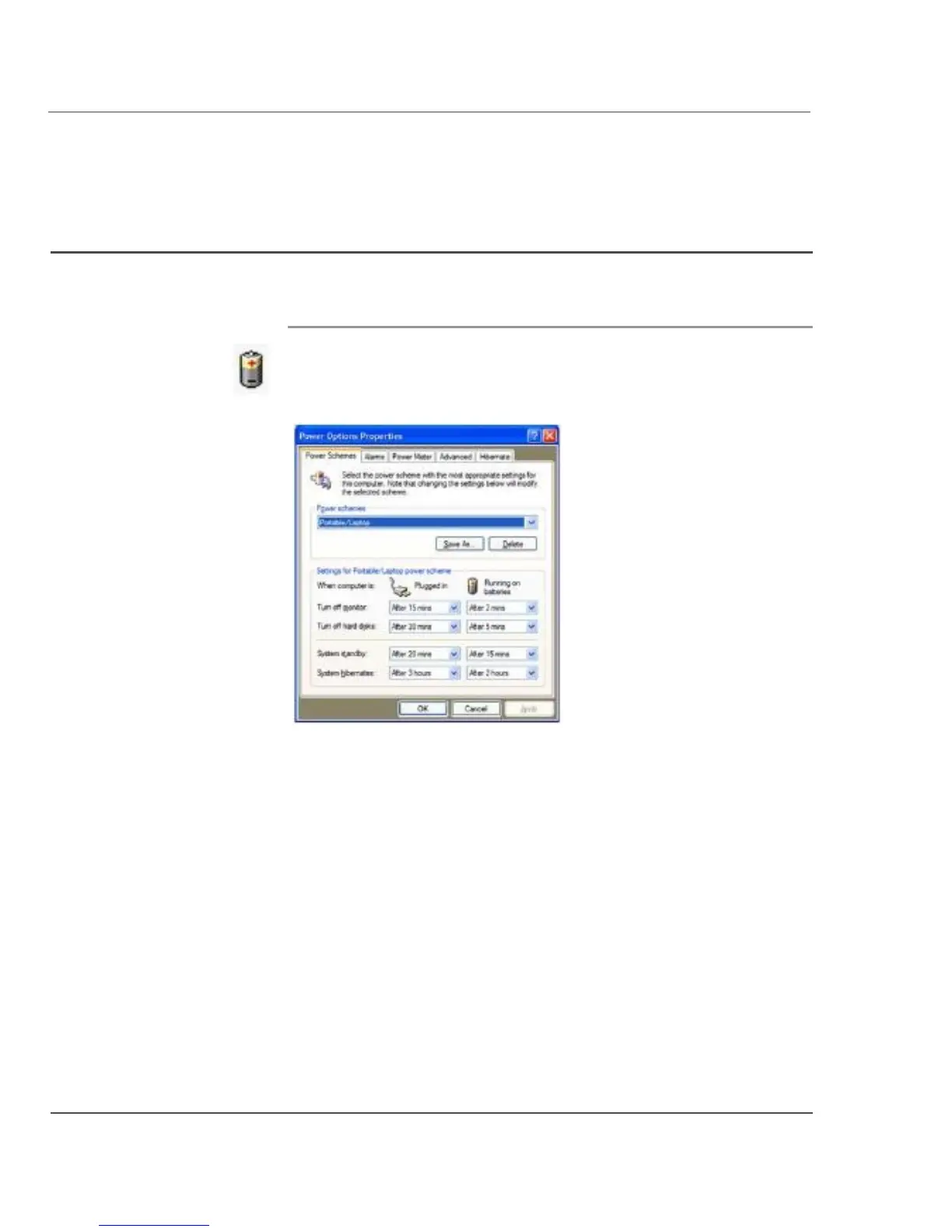 Using power options Windows XP