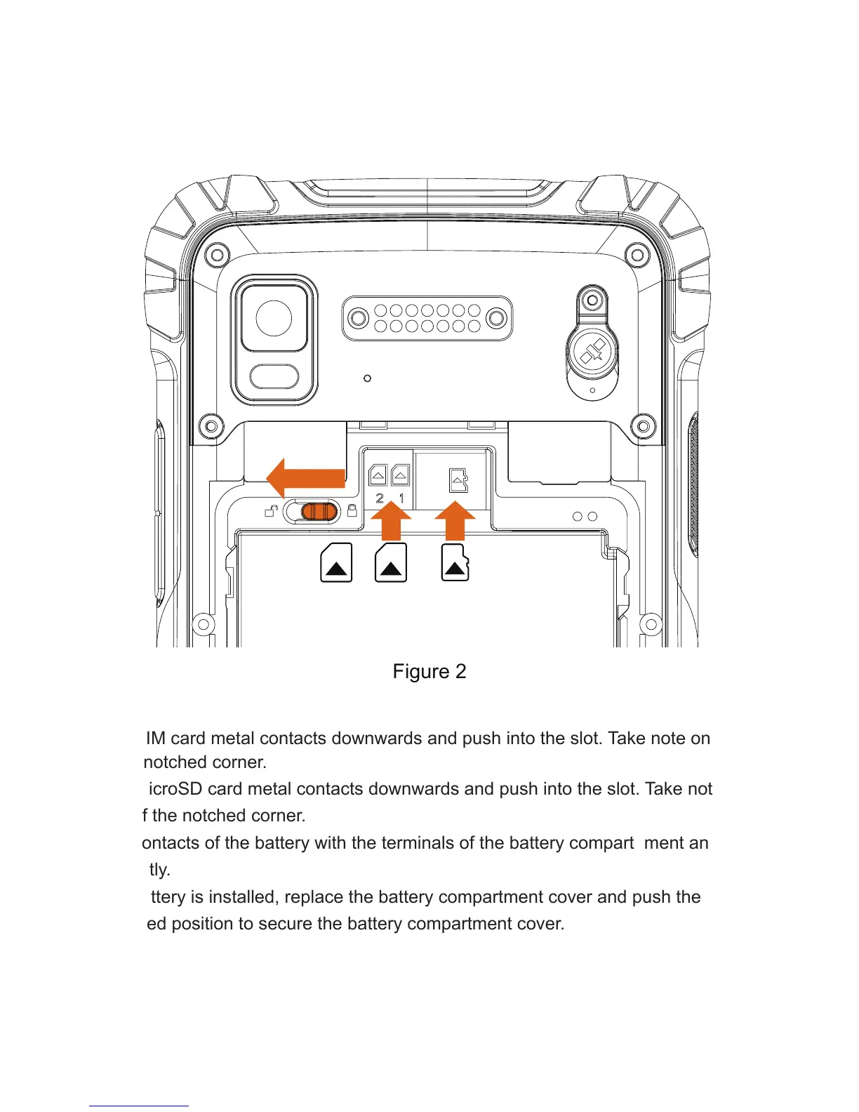 • After the battery is installed, replace the battery compartment cover and push the back cover