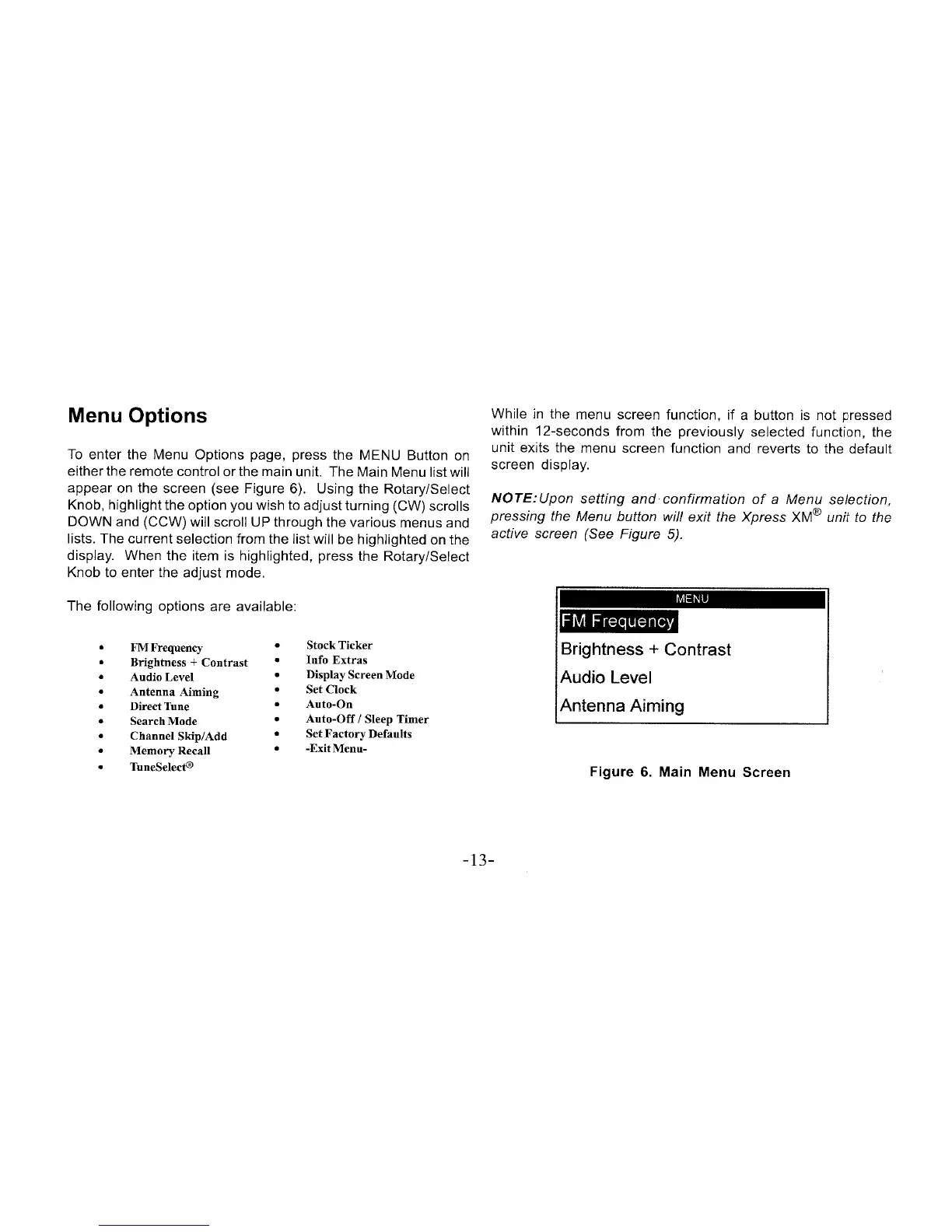 Xpress xmc10 - Menu Options