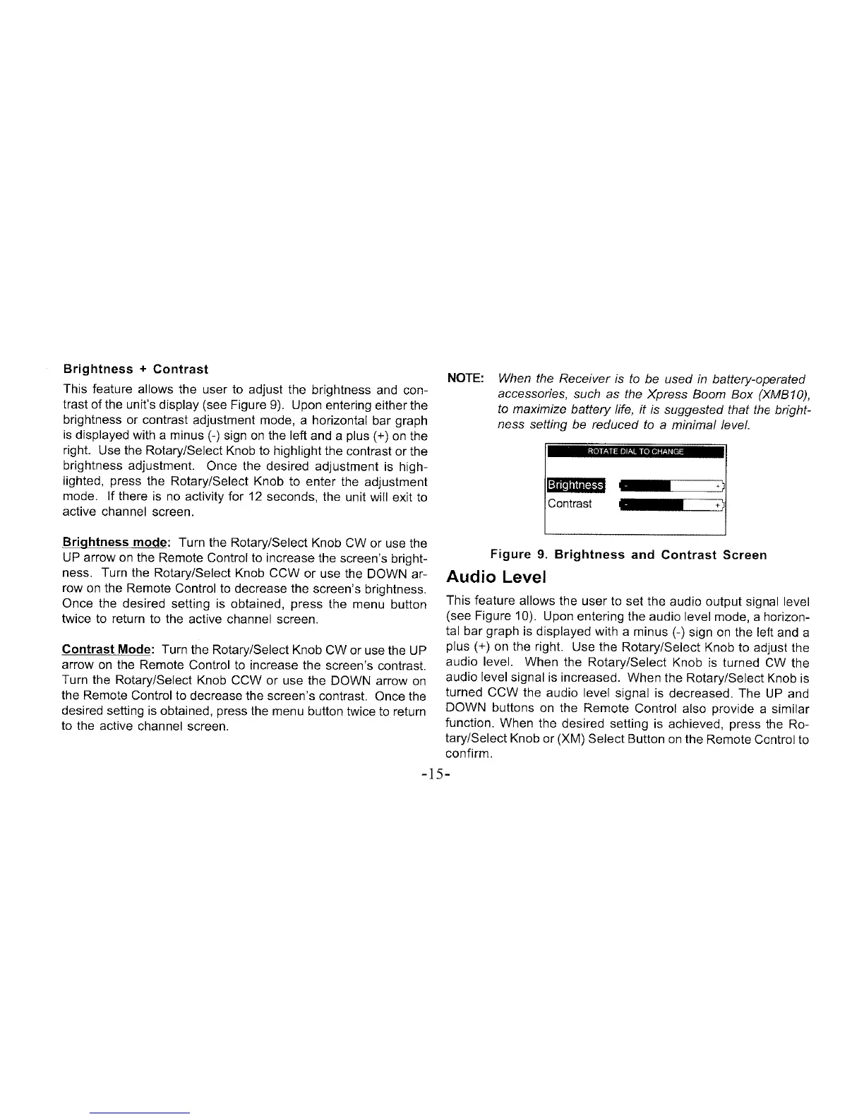 Xpress xmc10 - Display and Audio Settings; Brightness and Contrast Adjustment; Audio Level Adjustment