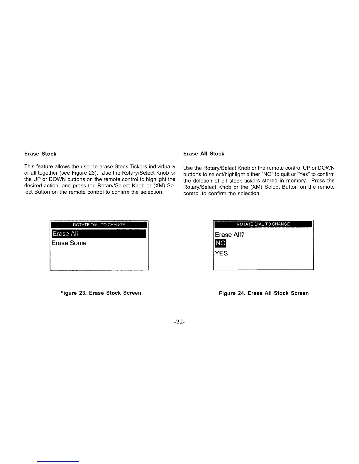 Xpress xmc10 - Erasing Stock Tickers; Erase Stock Individually; Erase All Stock Tickers