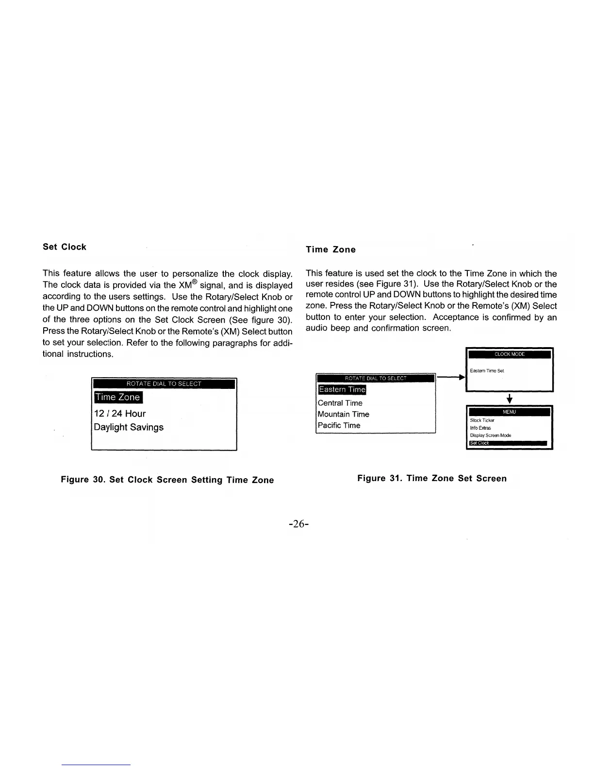 Xpress xmc10 - Clock Settings; Setting the Clock Display; Time Zone Configuration