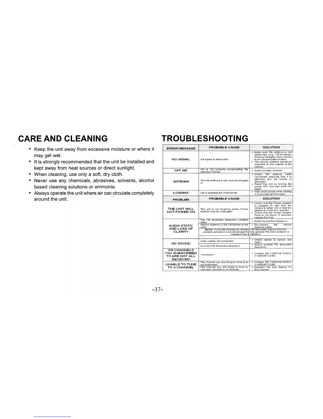 Xpress xmc10 - Care and Cleaning; Troubleshooting