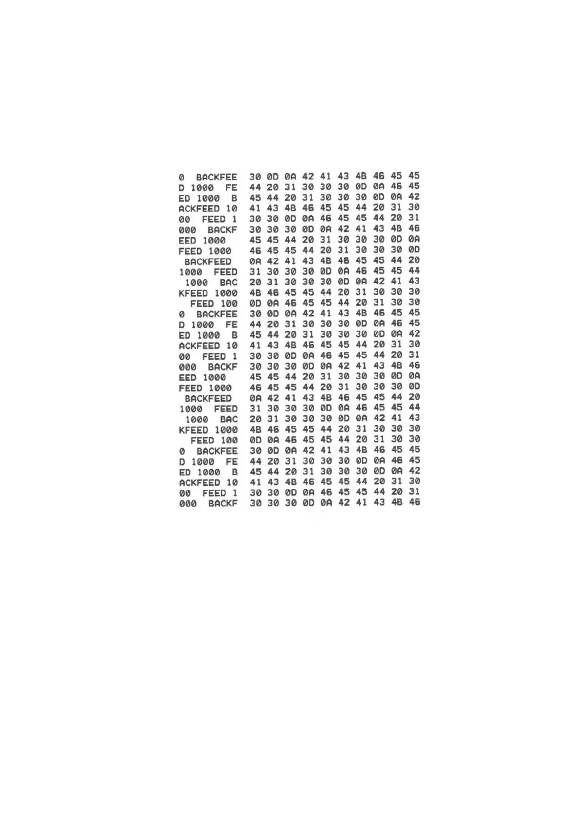 Printer will enter dump mode after printing printer configuration. In the dump mode, all