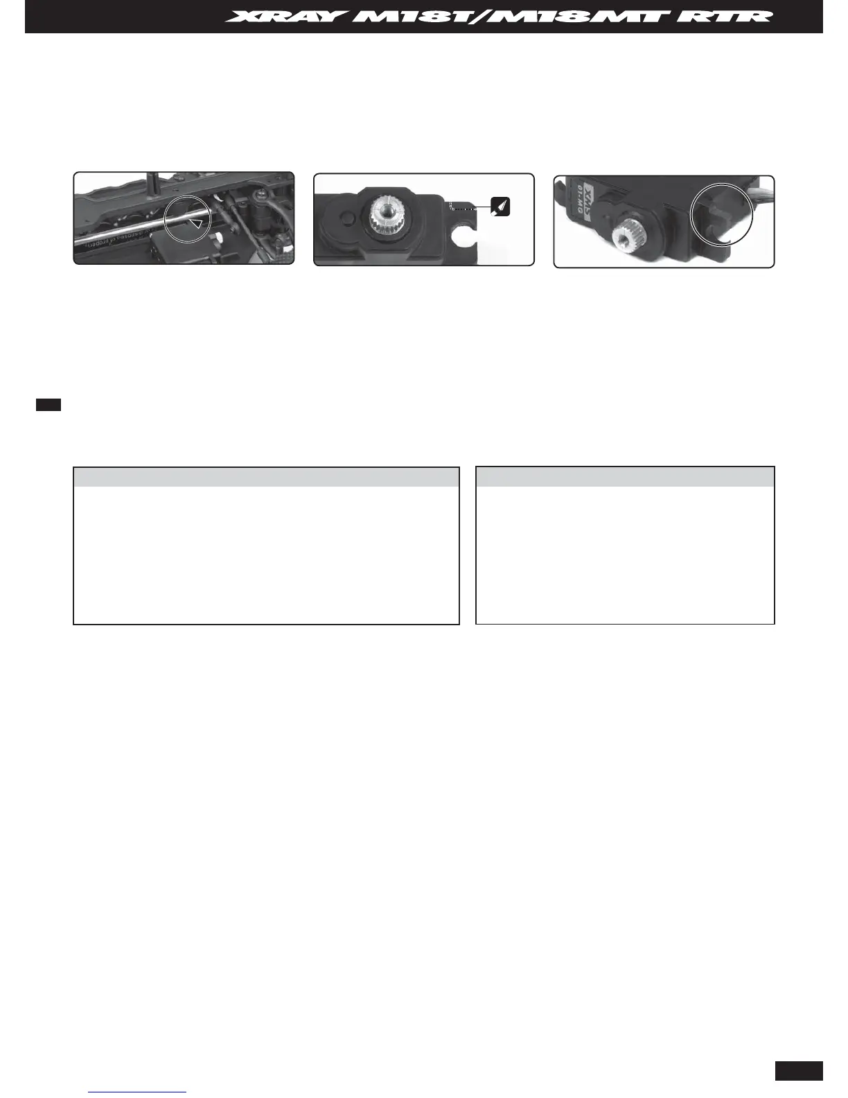 • Do not stall the motor. The ESC will fail within seconds if power is applied to the motor when the car cannot move.