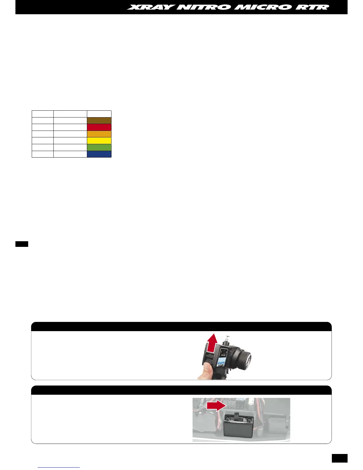 • Always turn your micro nitro truck transmitter on fi rst and off last. This will help to prevent your micro nitro truck from receiving stray signals from