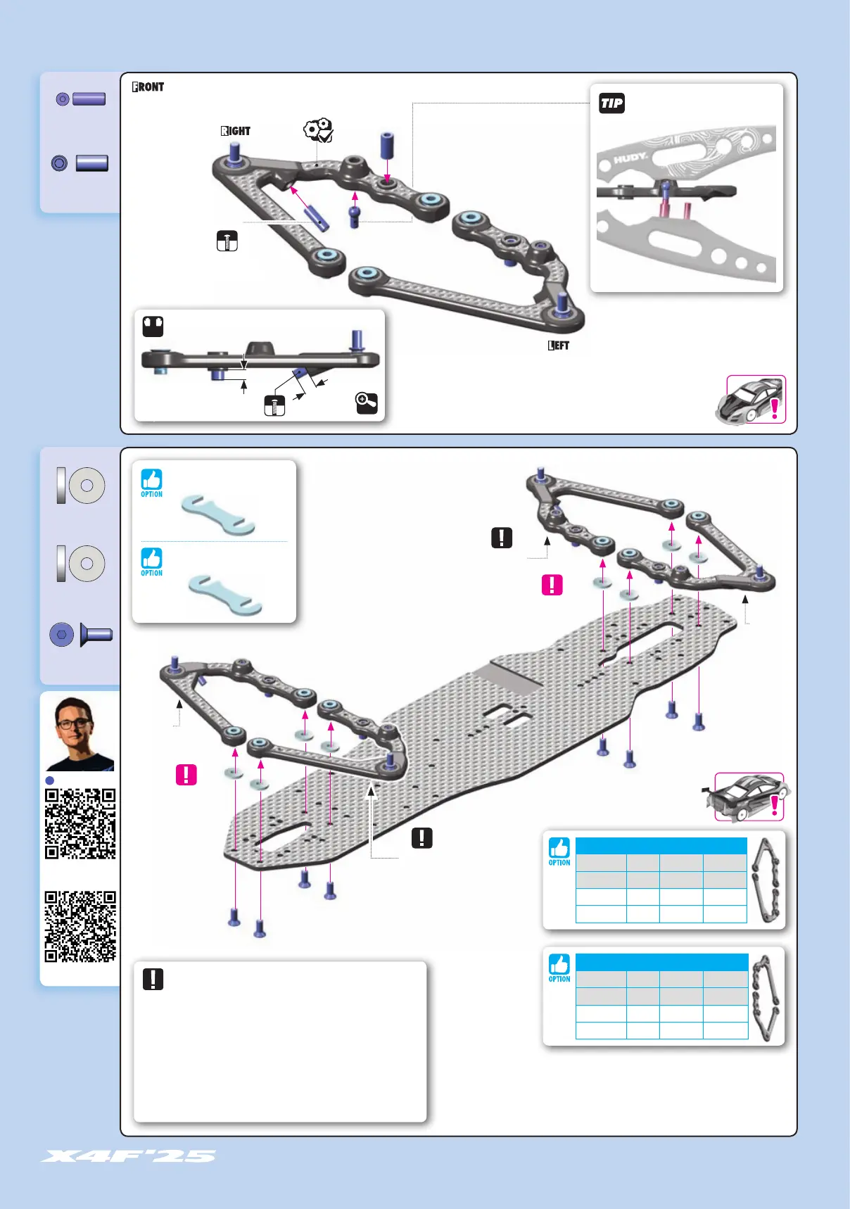We recommend the MEDIUM hardness of the lower suspension arms for