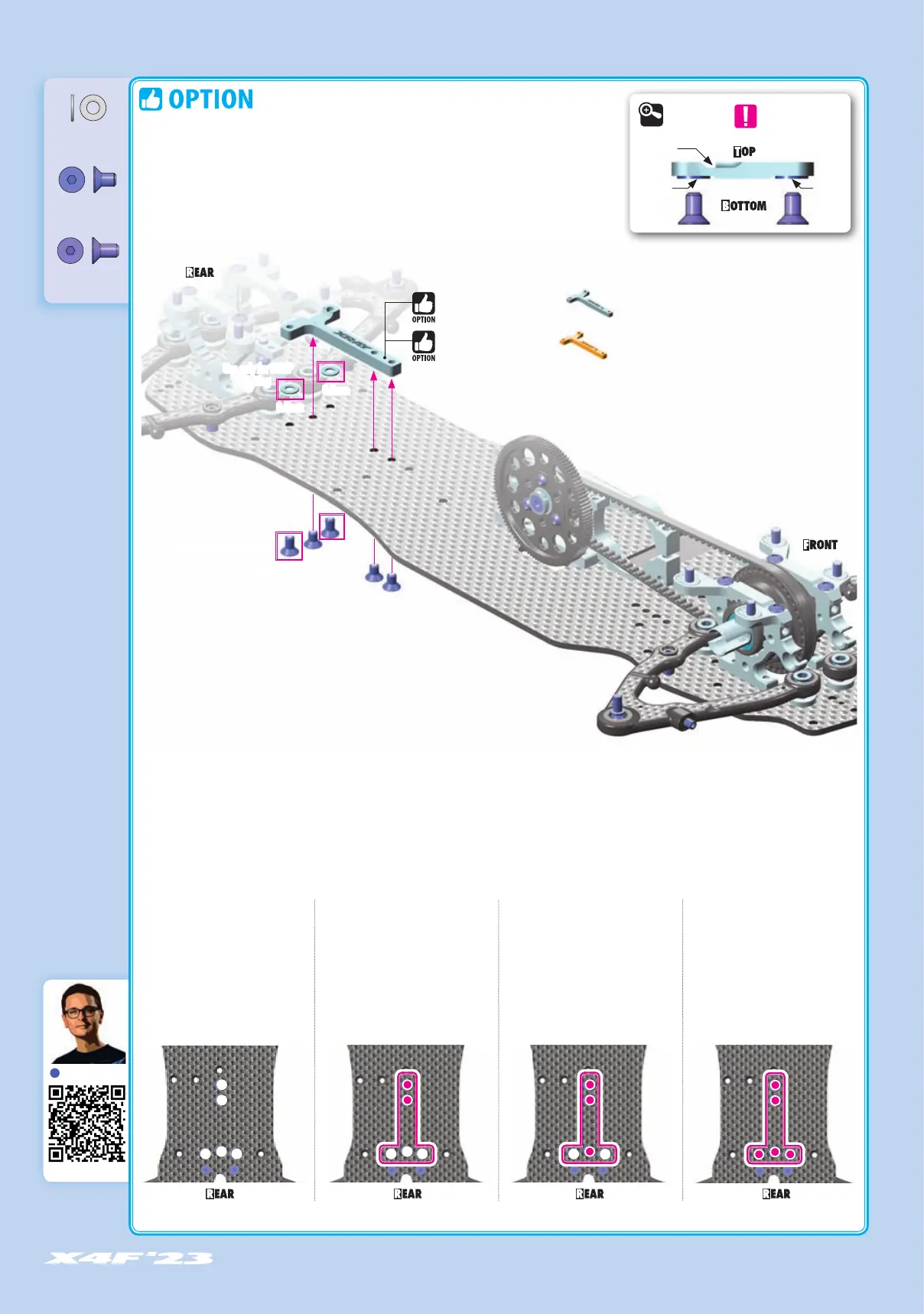 The brace provides chassis flex adjustment possibilities depending on which screws are connected.