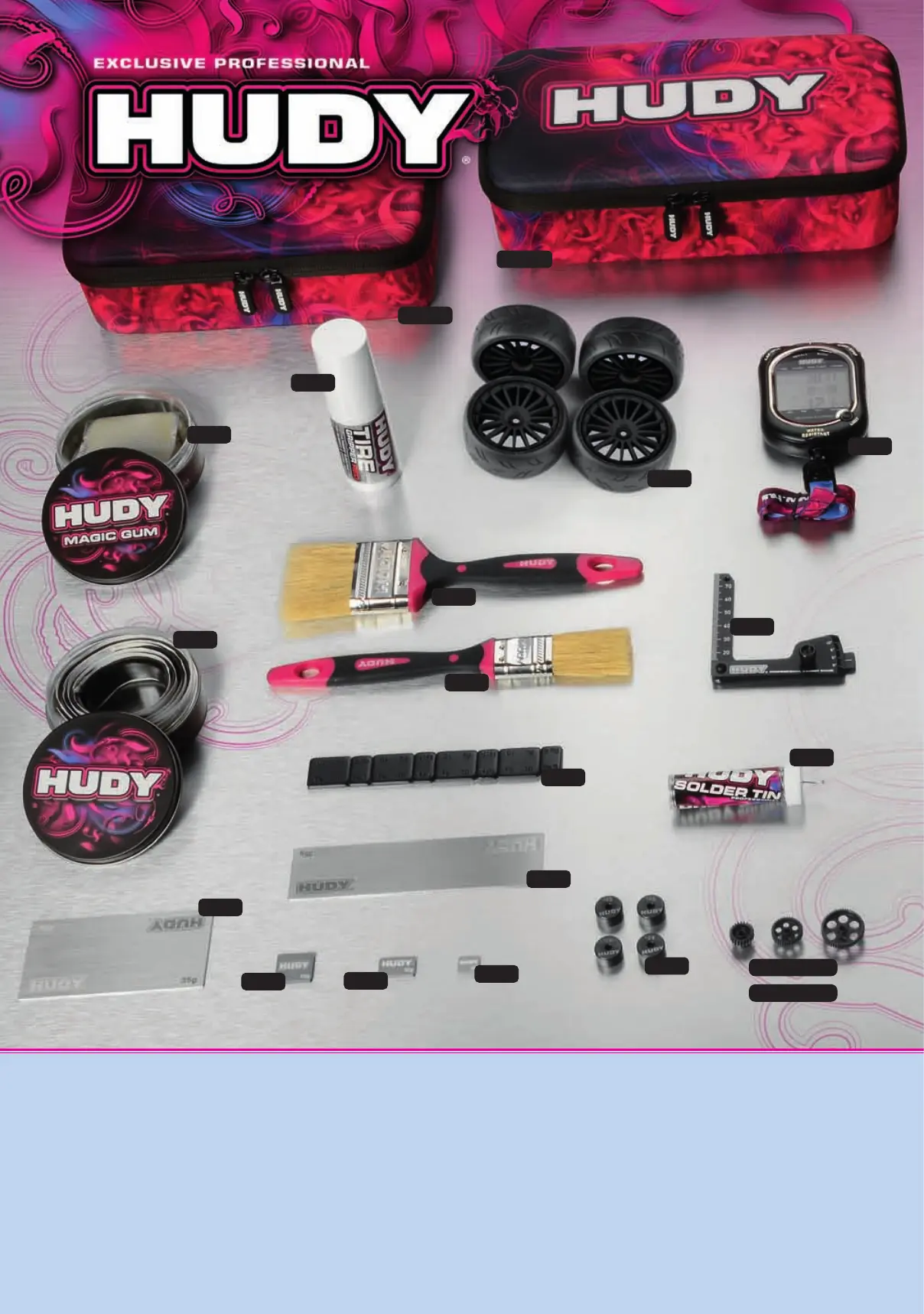 107772 HUDY PROFESSIONAL 1/10 TC WHEEL ARCH MARKER + WHEEL ADAPTER & NUT
