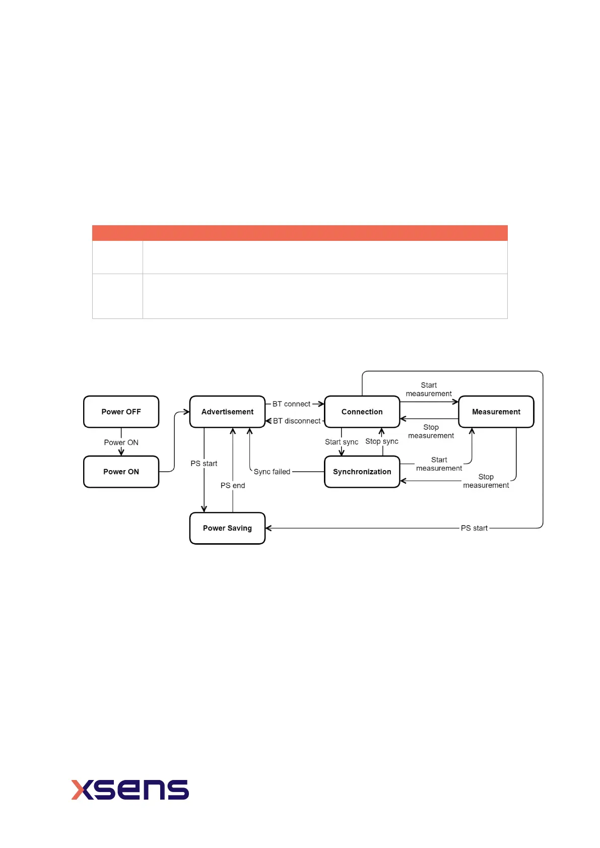 Figure 8: Xsens DOT state transition diagram