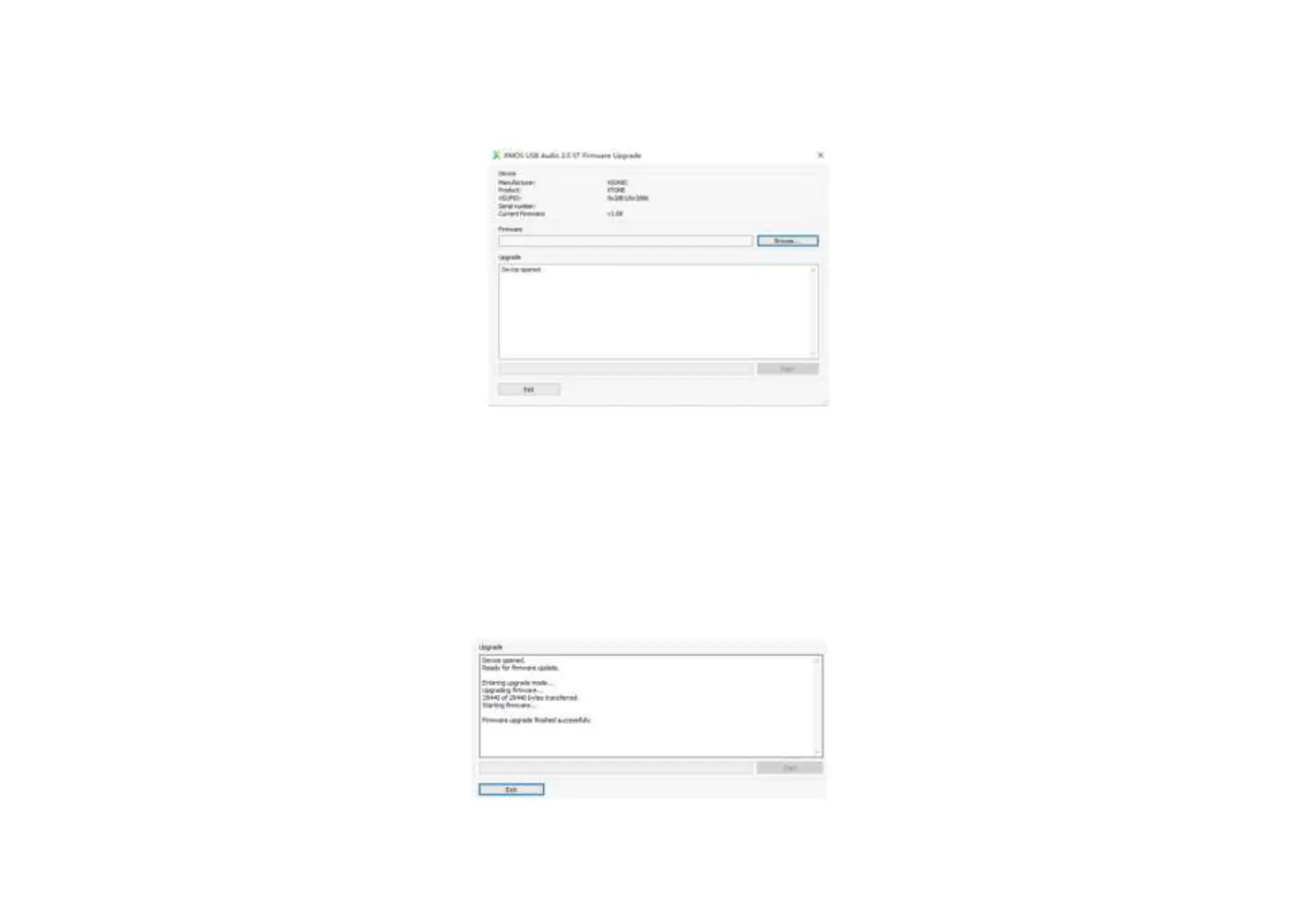 shows upgrade finished successfully, click exit. If the process is stuck, re-plug XTONE and repeat this step.