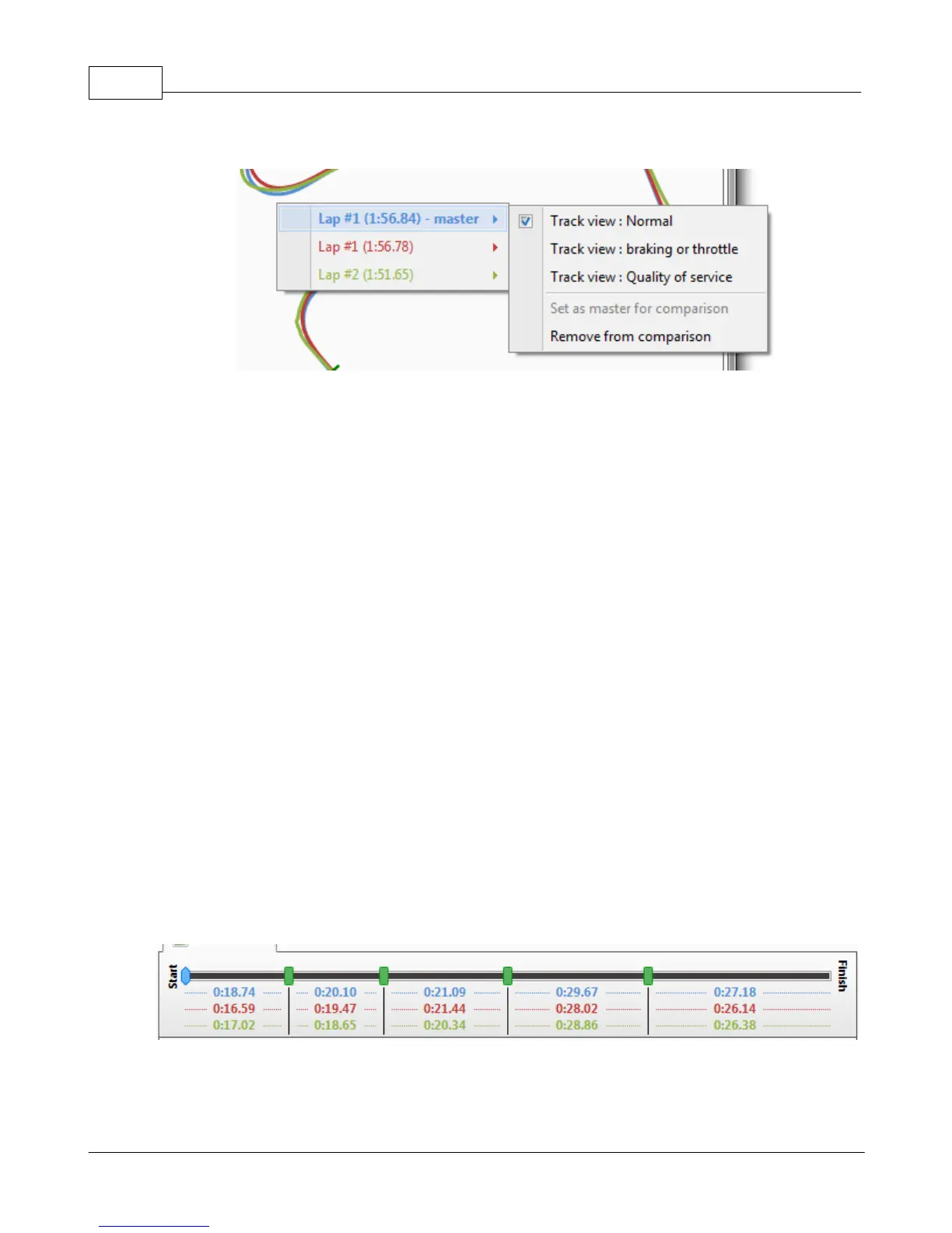 The Set as master for comparison item sets the master lap for the comparison. The master lap is