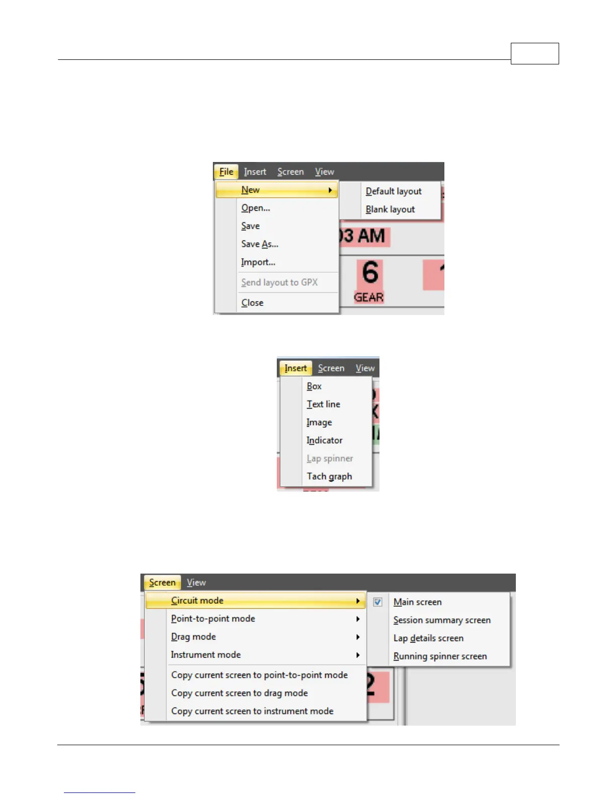 The file menu allows you to maintain your layout files. The file menu is also where you can send