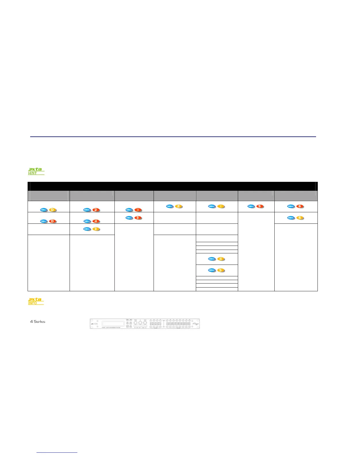 XTA DP444 - Menu System Overview; Main Menu Categories