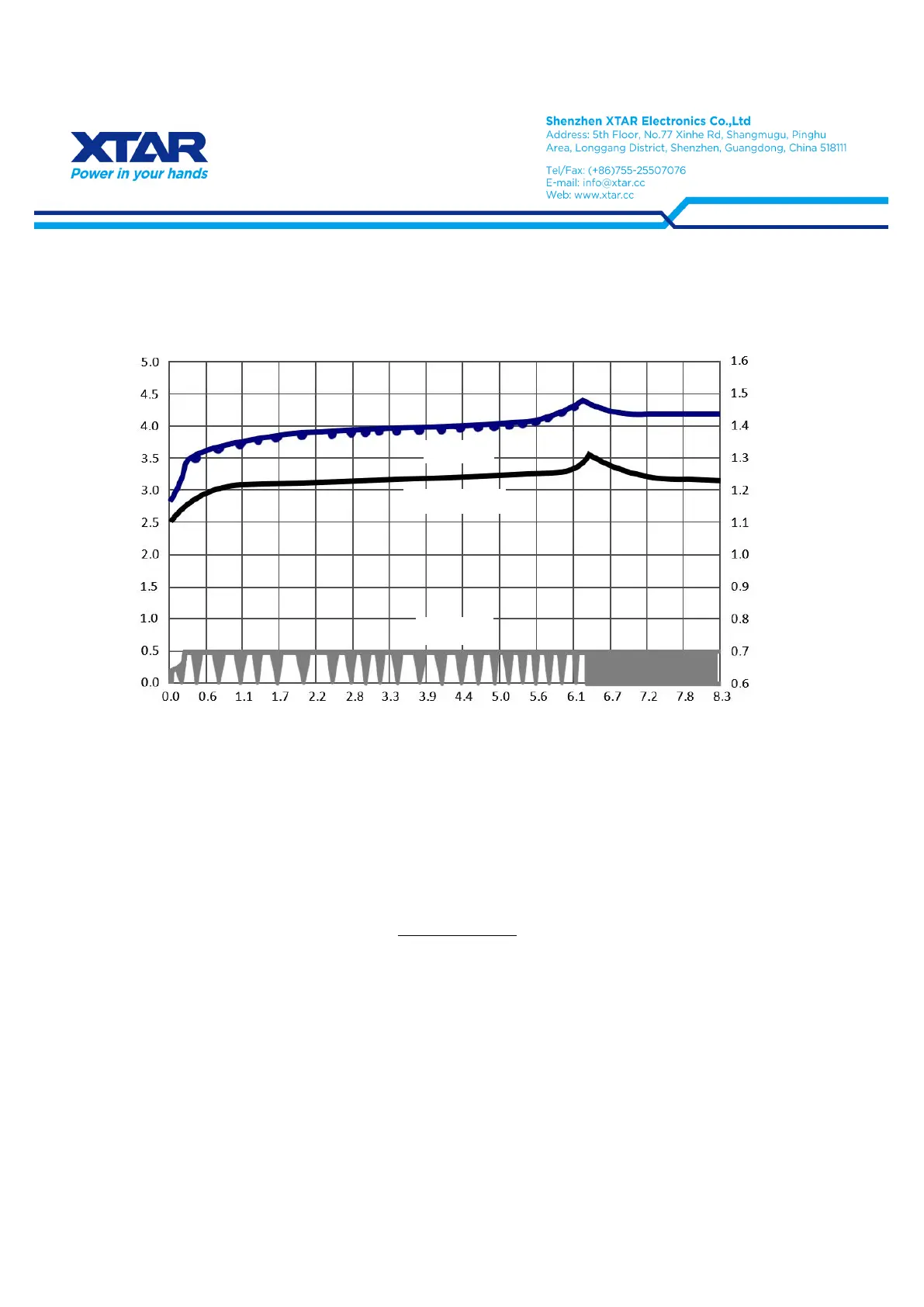 XTAR 1.2V 2500mAh NiMH AA charge characteristics (500mA) - XTAR’s unique control technology