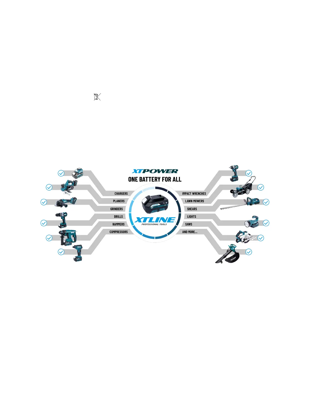 (Cordless tools) with a voltage value of 18 V. The battery is compatible with all cordless tools of the XTLINE