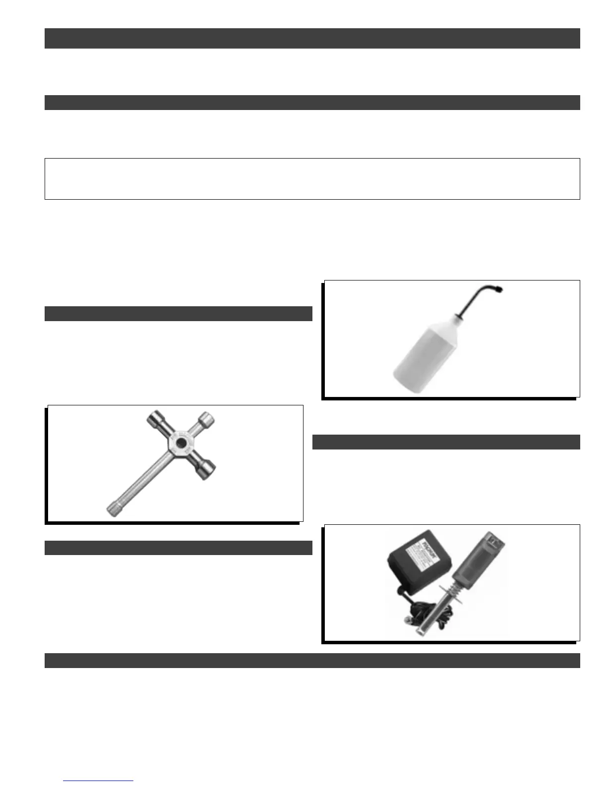 This section lists the recommended items necessary to run and maintain your new Mammoth RTR Nitro Monster Truck. We have tested