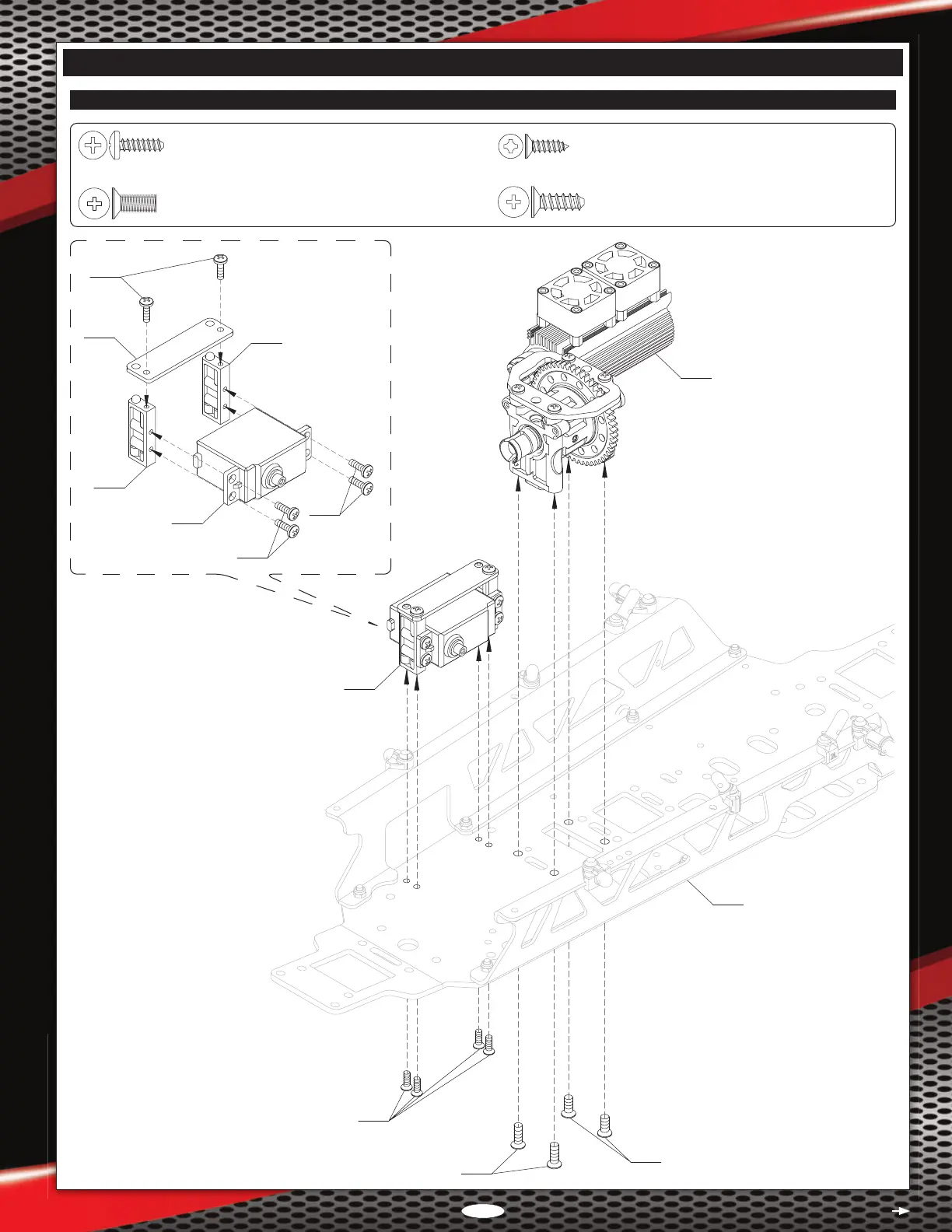 STEP 28: STEERING SERVO AND MOTOR/CENTRE DIFFERENTIAL MOUNTING