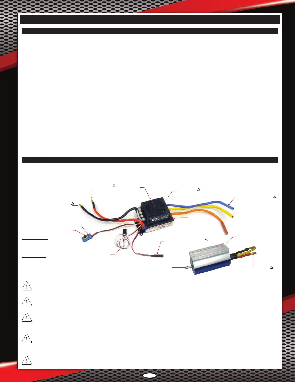 Please make sure to read through the separate Brushless Speed Controller User Manual included to learn more about the ESC's