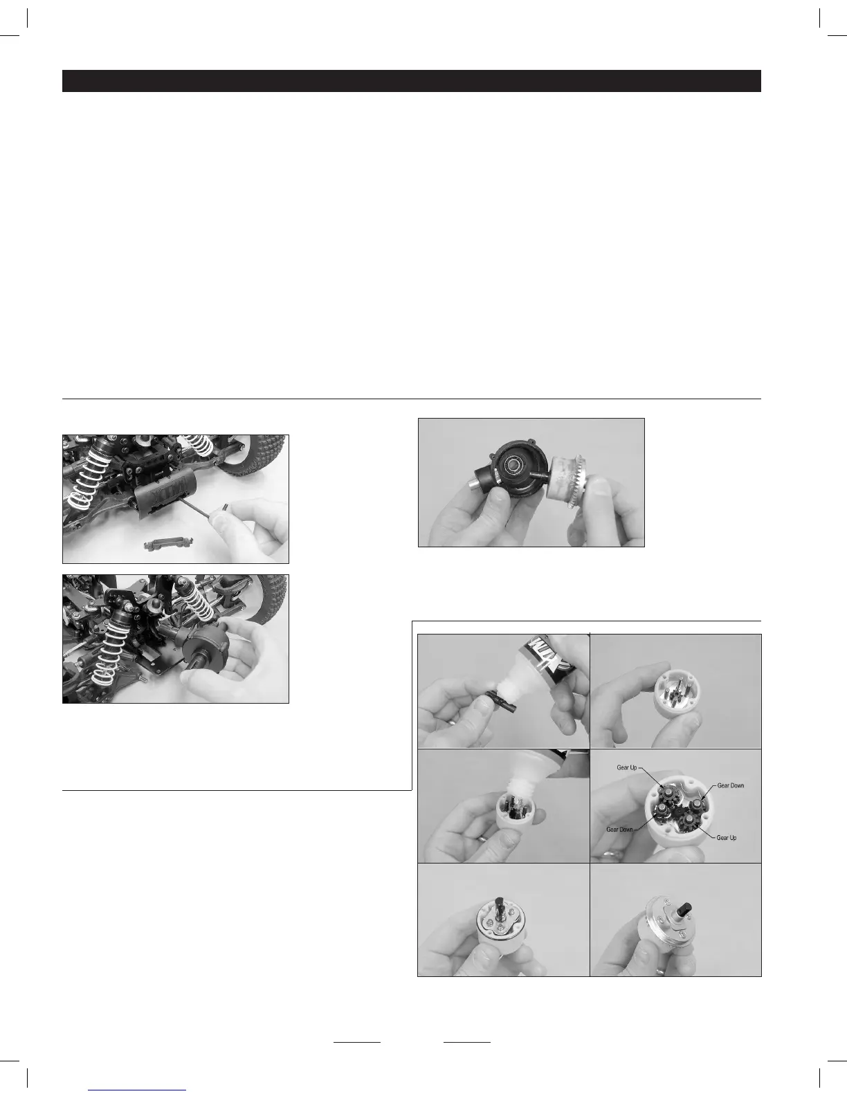 You can make ne-tuned adjustments to each differential by removing the differentials from the chassis, opening them up and replacing