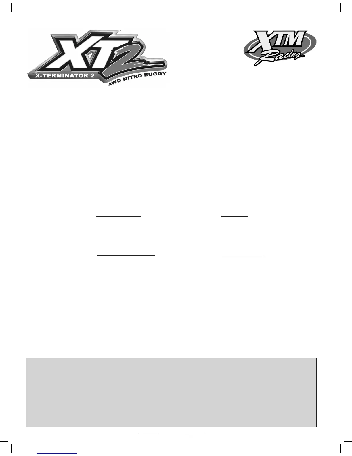 replacement parts, the XTM Racing order number is also listed on the corresponding parts drawings in the Assembly Manual, so it’s easy