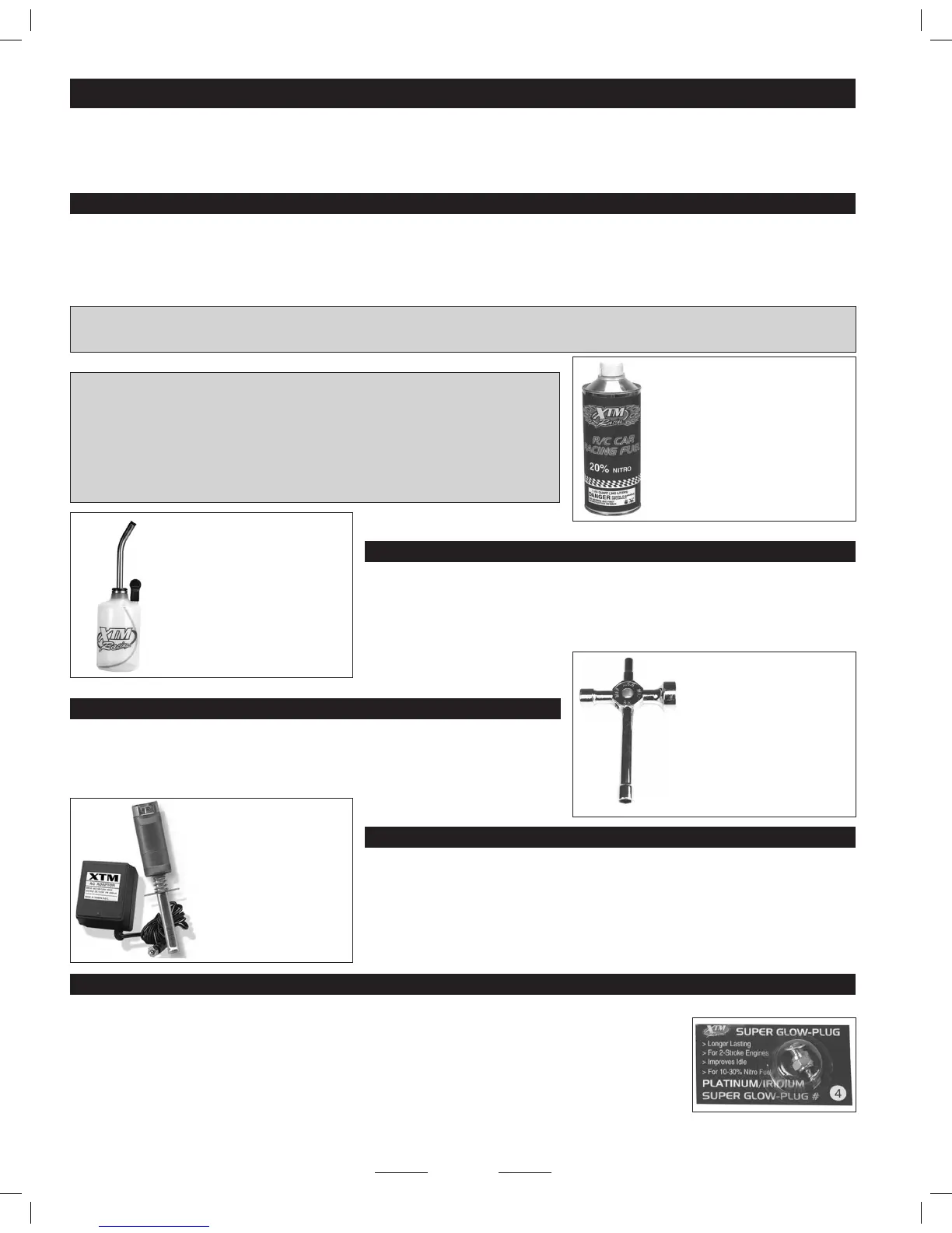 could also damage the engine. AN XTM RACING # 4 GLOW PLUG IS INCLUDED IN THE ENGINE.